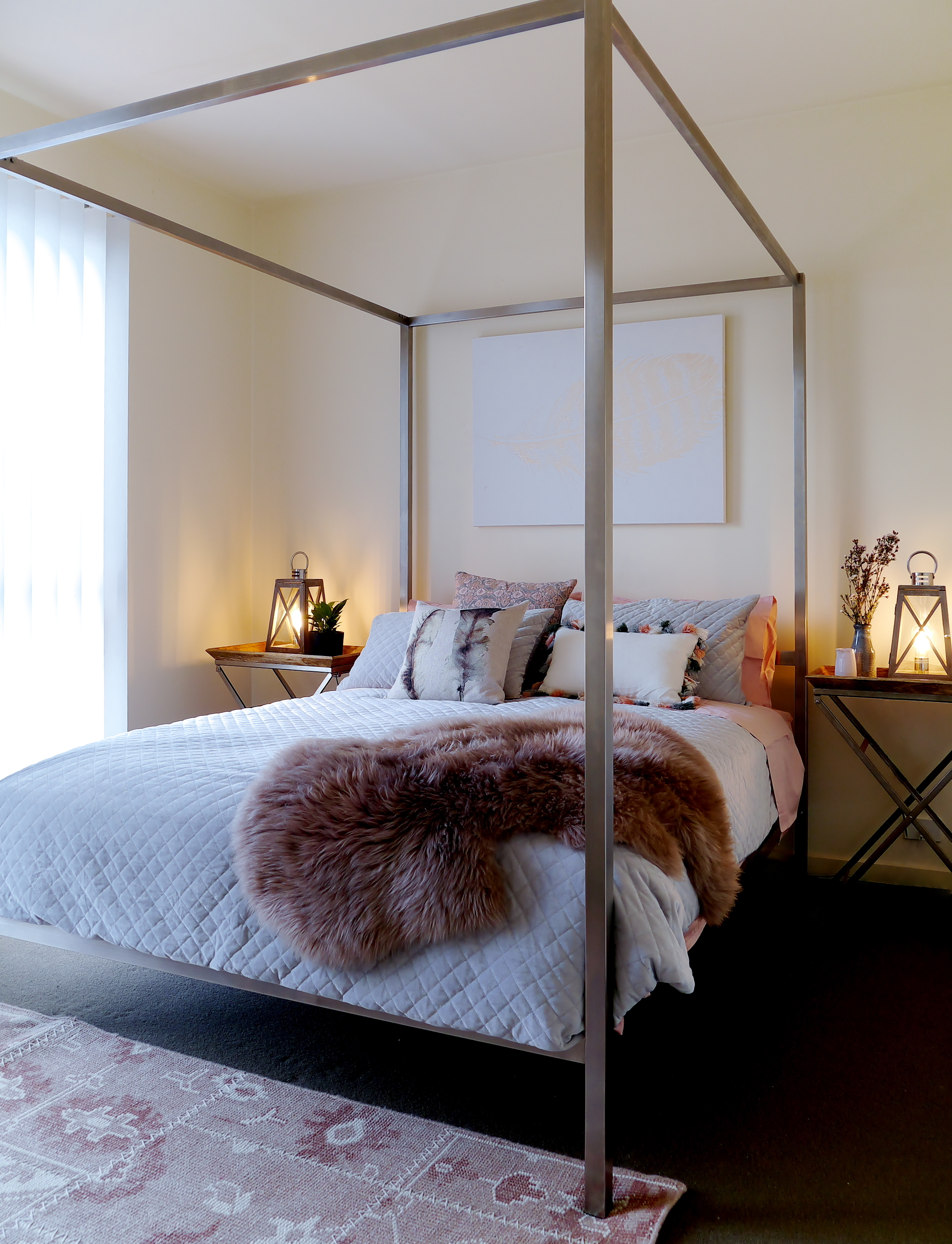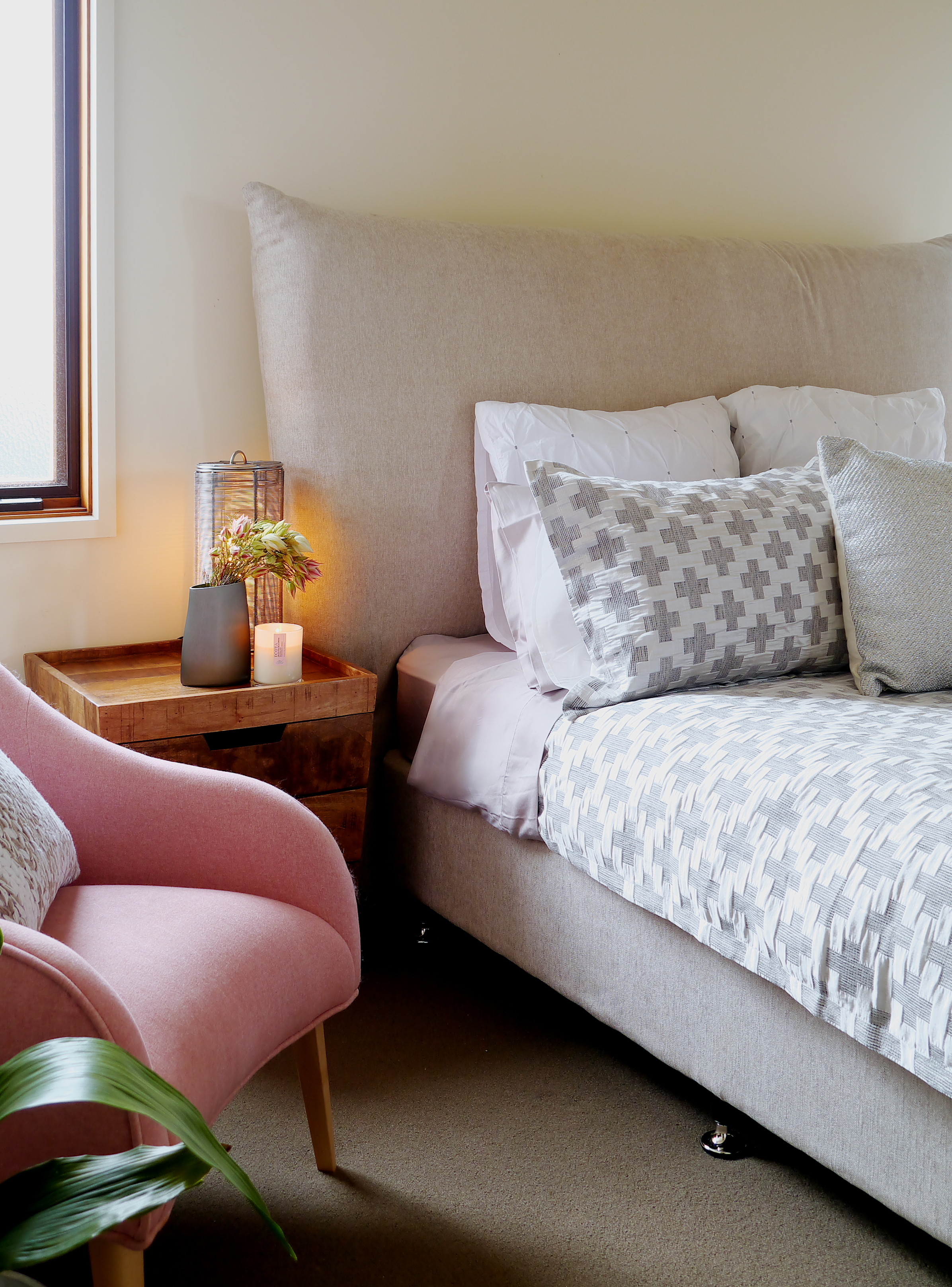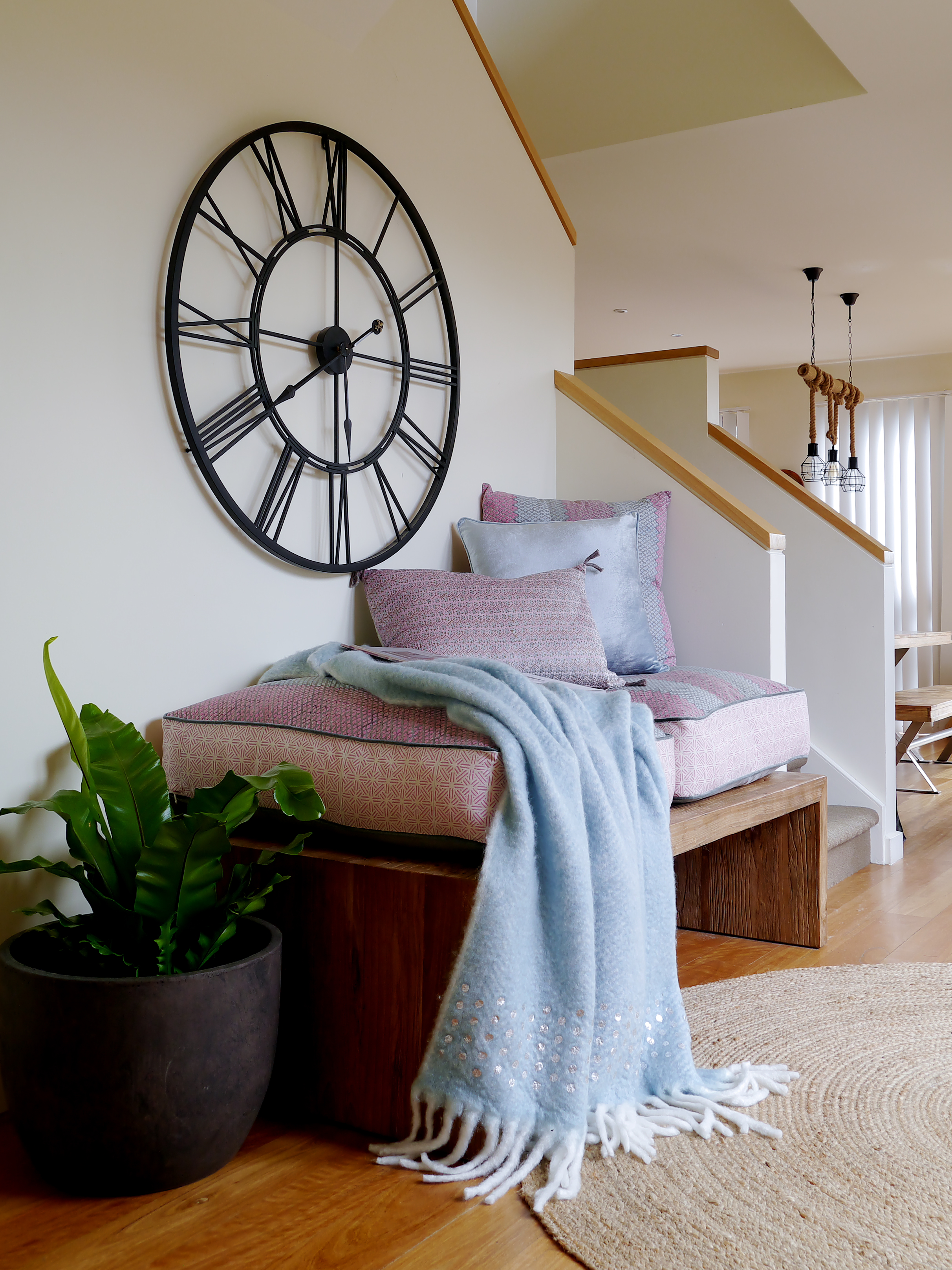 Moving from the suburbs to a coastal townhouse was a lifestyle change for my client. Her brief was to decorate her whole home with pretty and comforting colours to create a warm & cosy place.