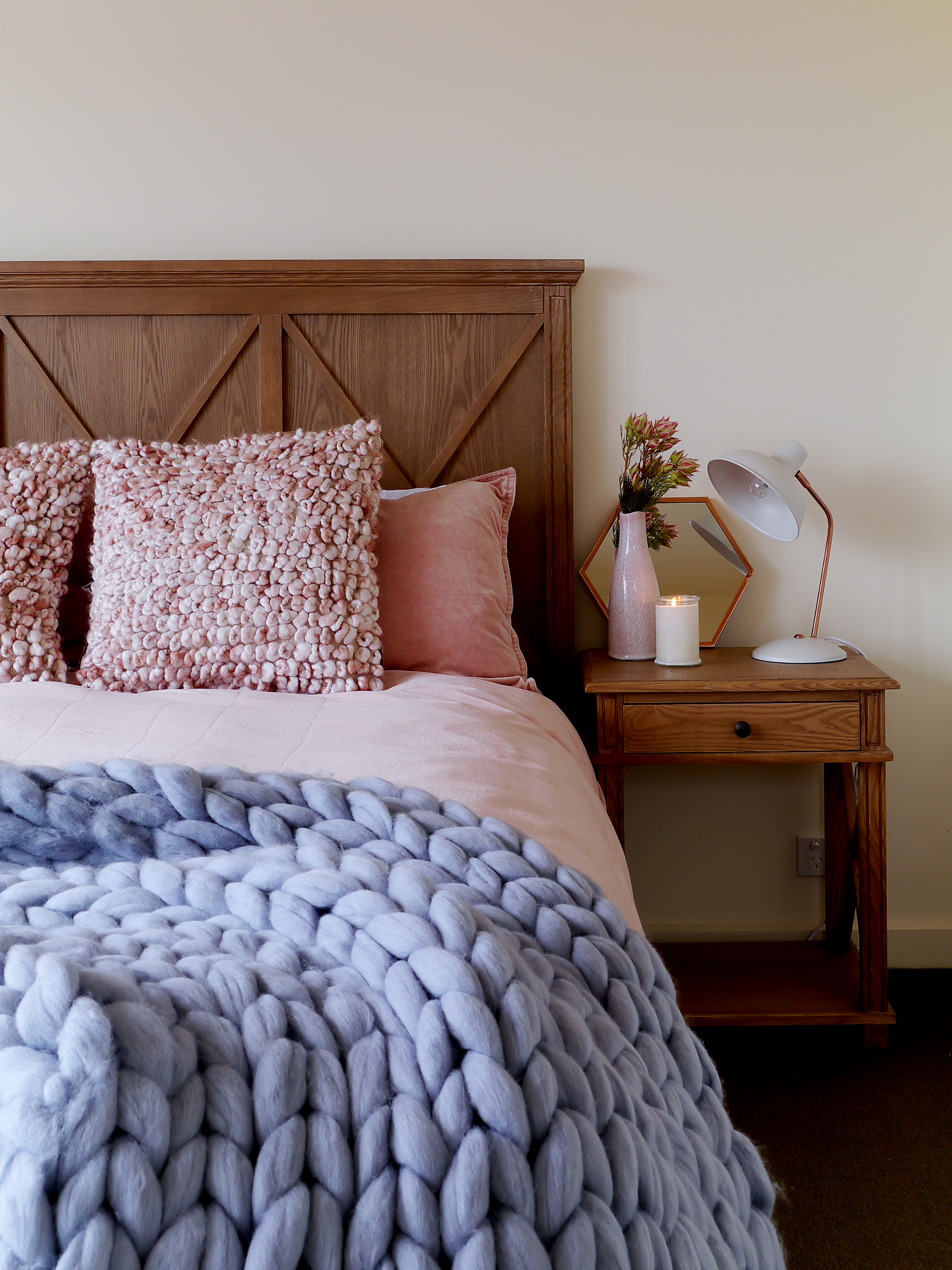 Her favourite colour is pink, so each room included this hue in some form or another, along with soft blues and greys. Her love of plants also added great texture and life to the interiors.