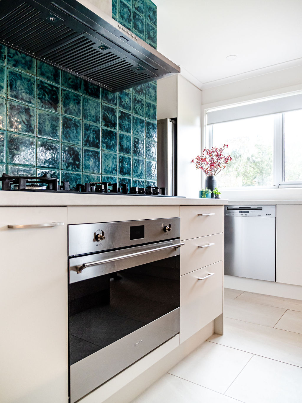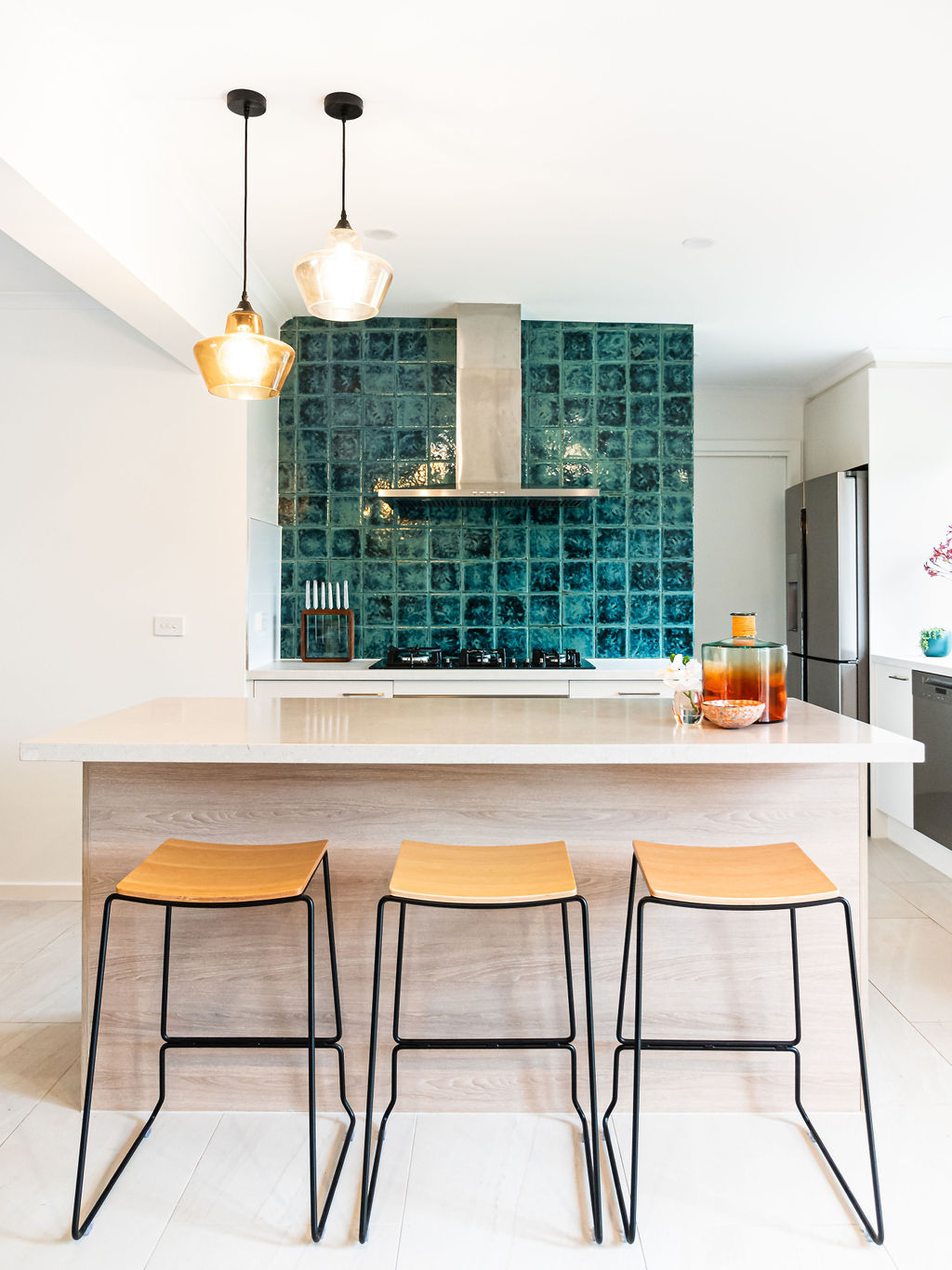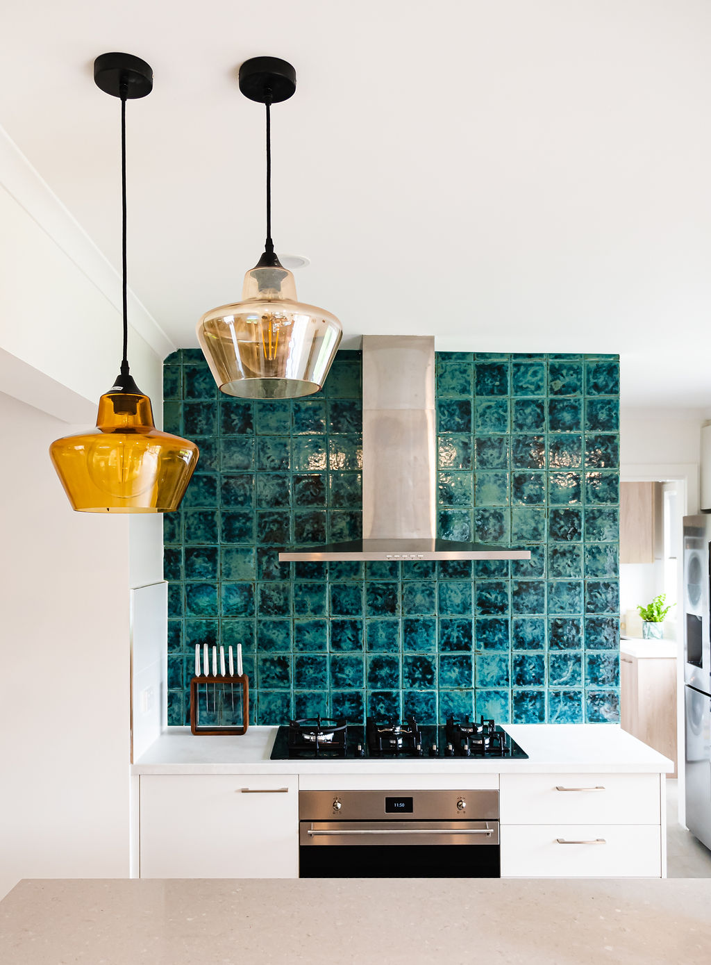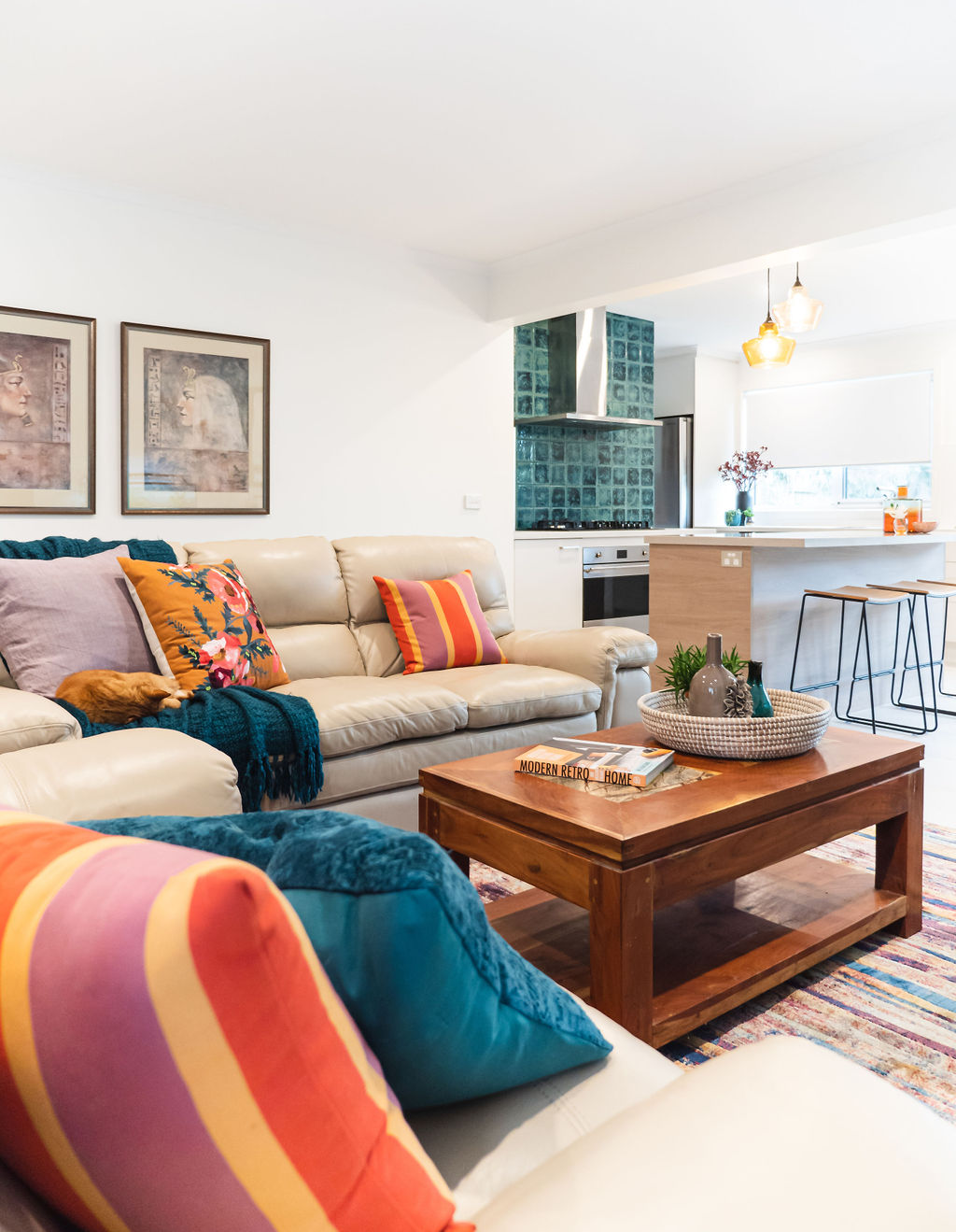 Once the renovations were complete, we worked together in choosing pendant lights, kitchen splashback tiles, re upholstering her beloved second hand dining chairs (original from the 70’s) and co ordinating cushions & rug.