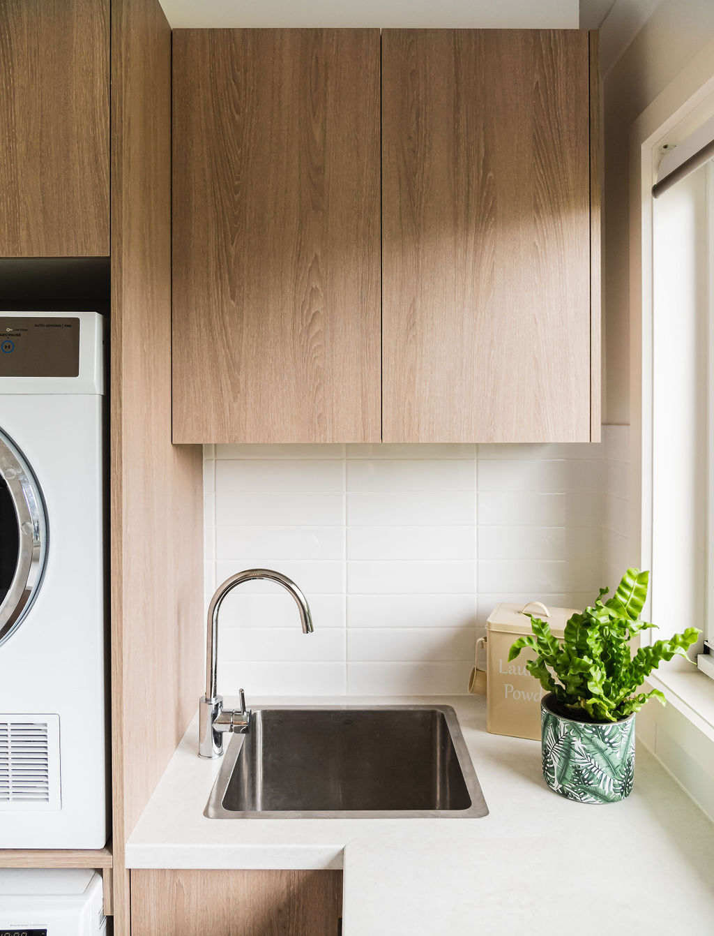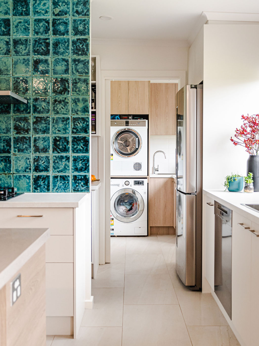 My client was on board right from the start with keeping hold of some of the retro elements in her home. I assisted during the major extension and renovation of almost half the home from the main living, kitchen, dining, laundry to a new bathroom. I collaborated with my kitchen designer to come up with a much more functional kitchen and open plan living, cleverly designed with my client’s lifestyle in mind.