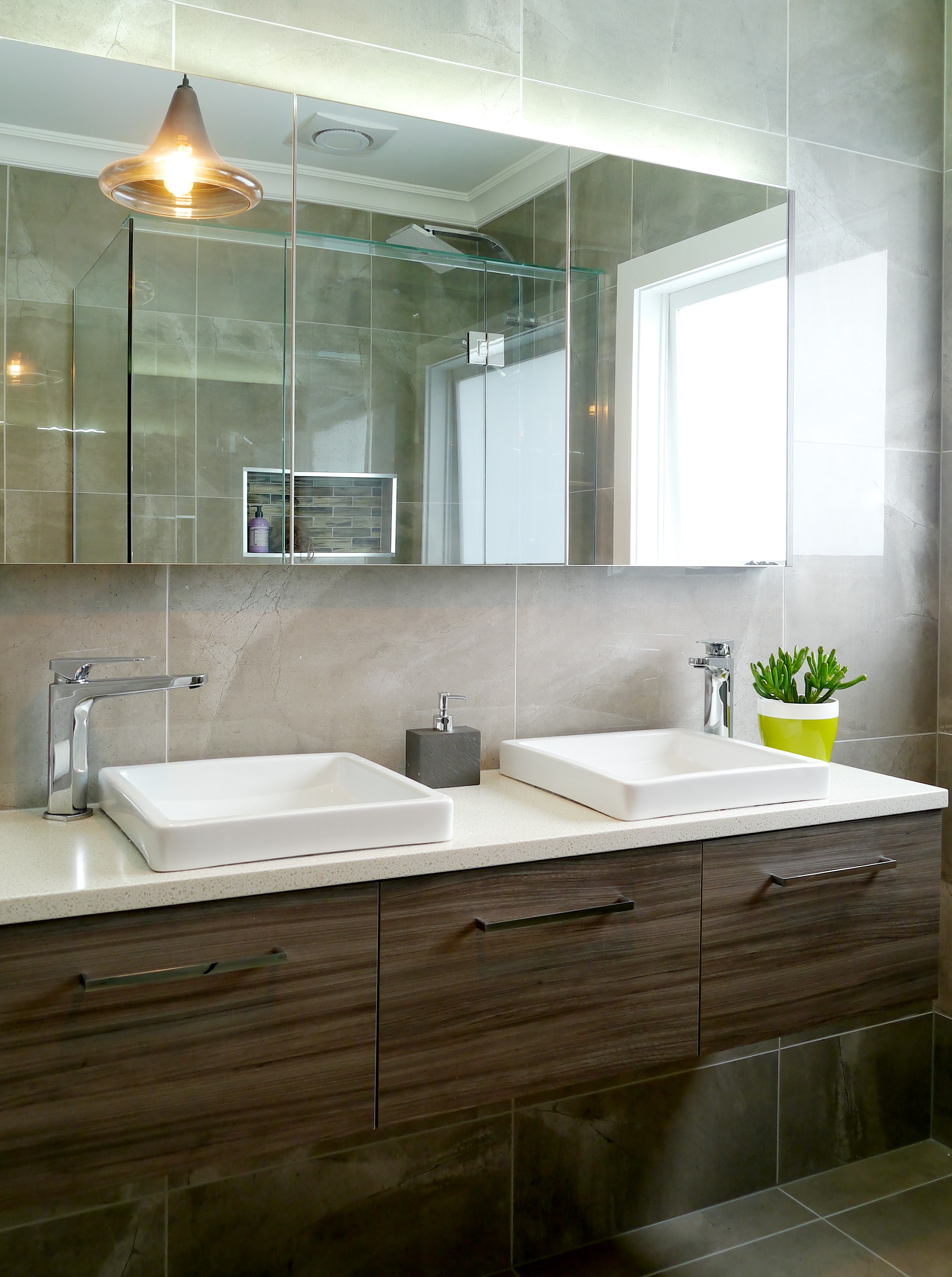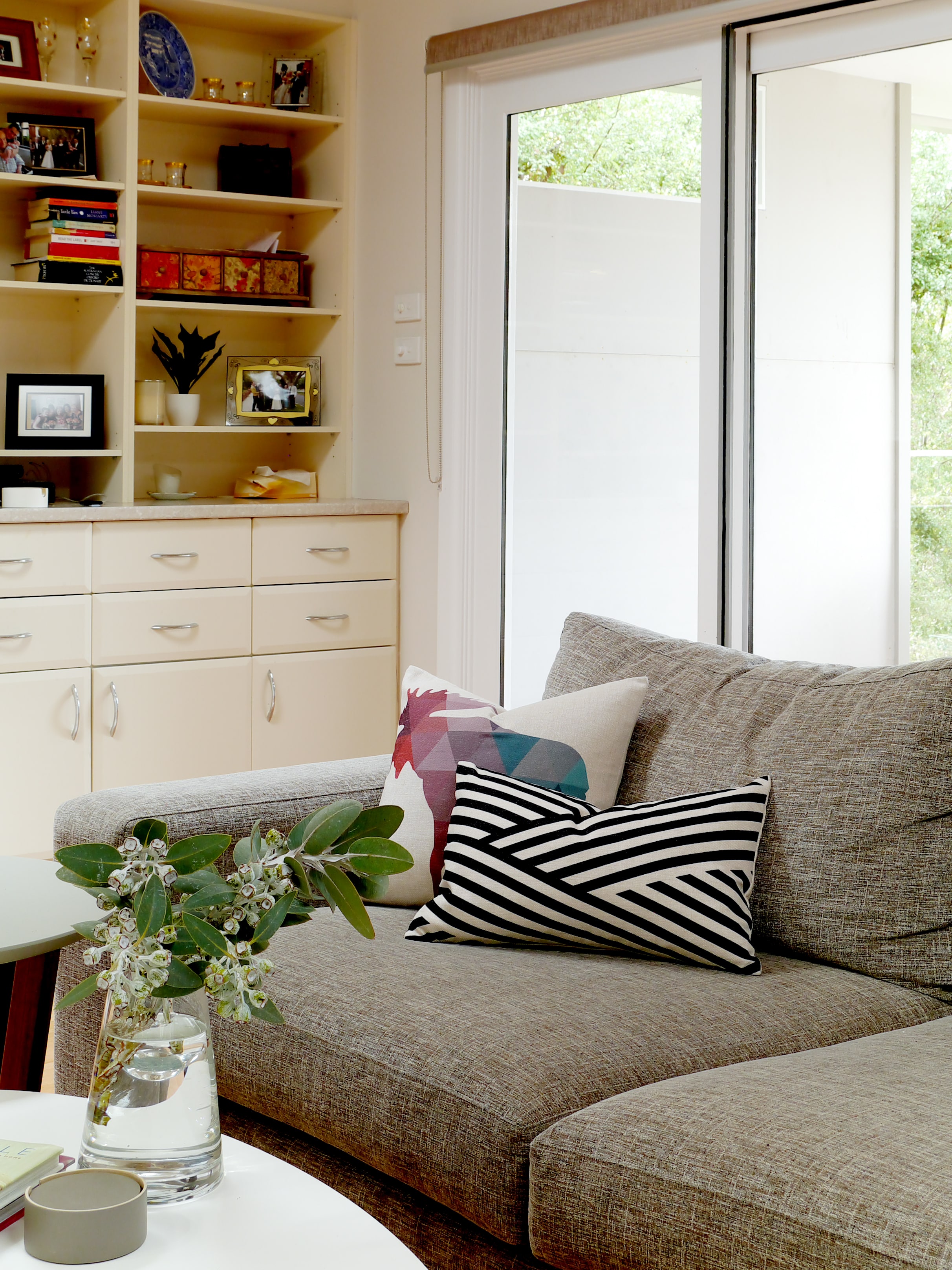 I was asked to assist with all the decisions when it came to bathroom, ensuite & laundry layouts as well as selection of all the tiles. I designed a sofa that would fit an awkward living room space, which was in a major thoroughfare.