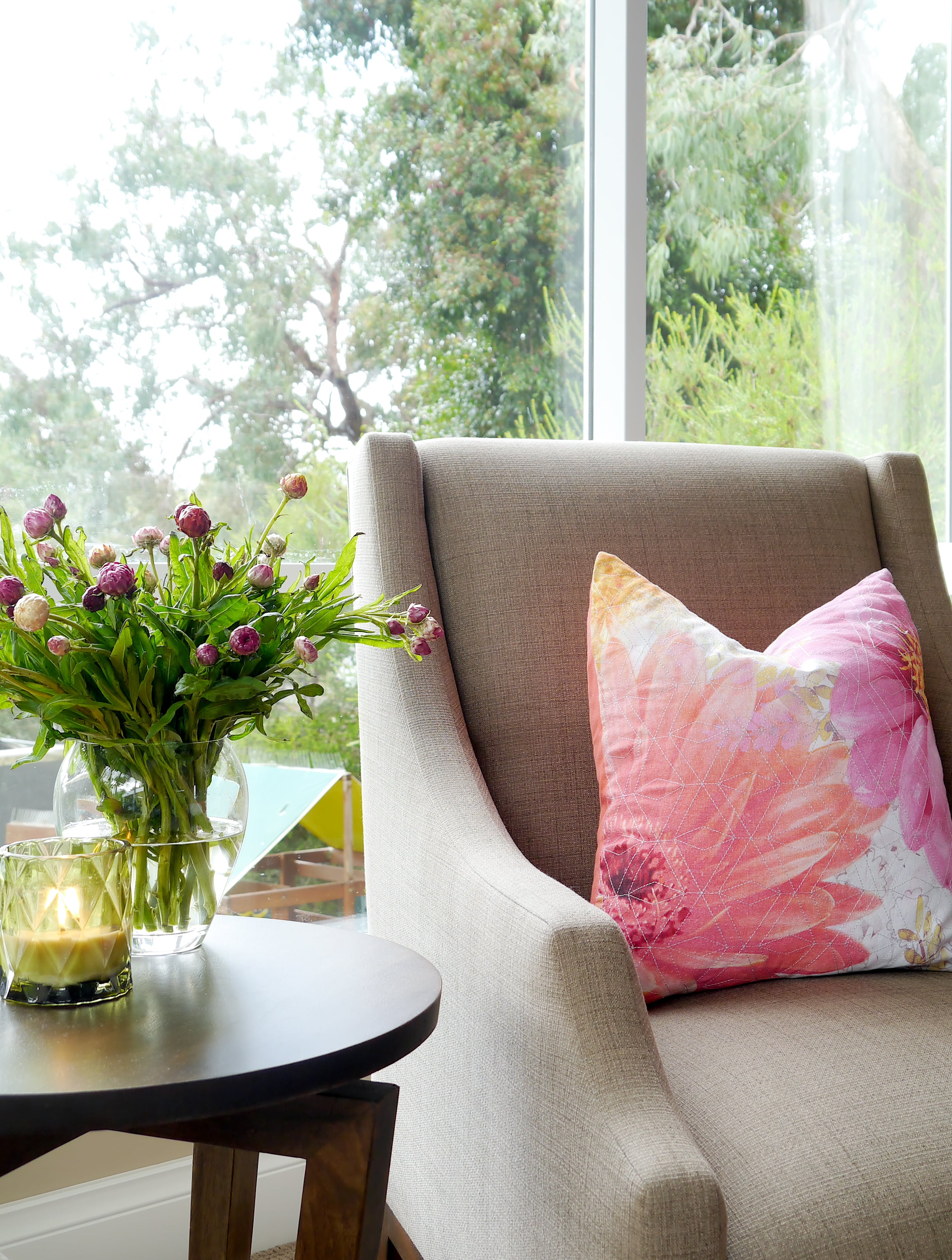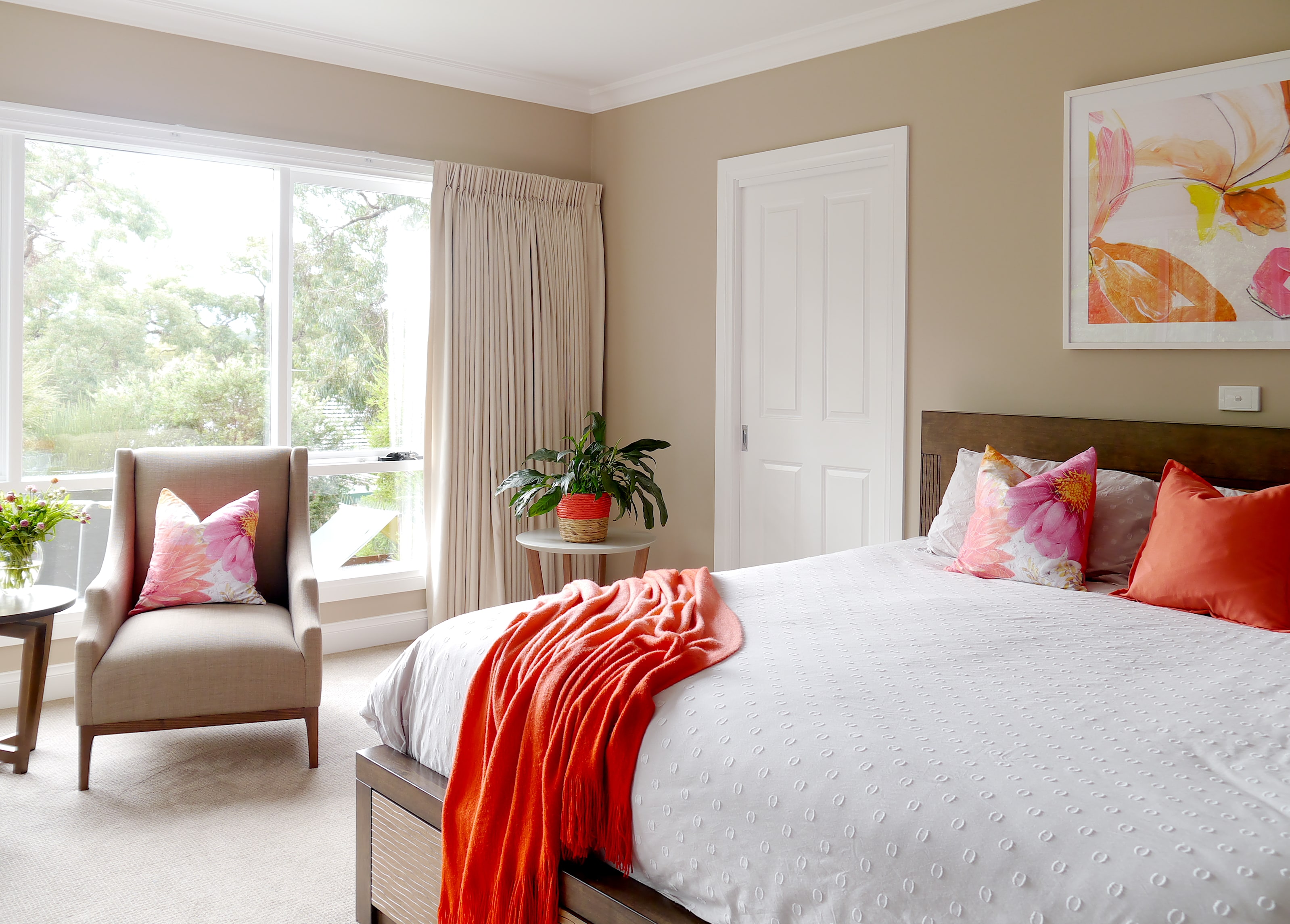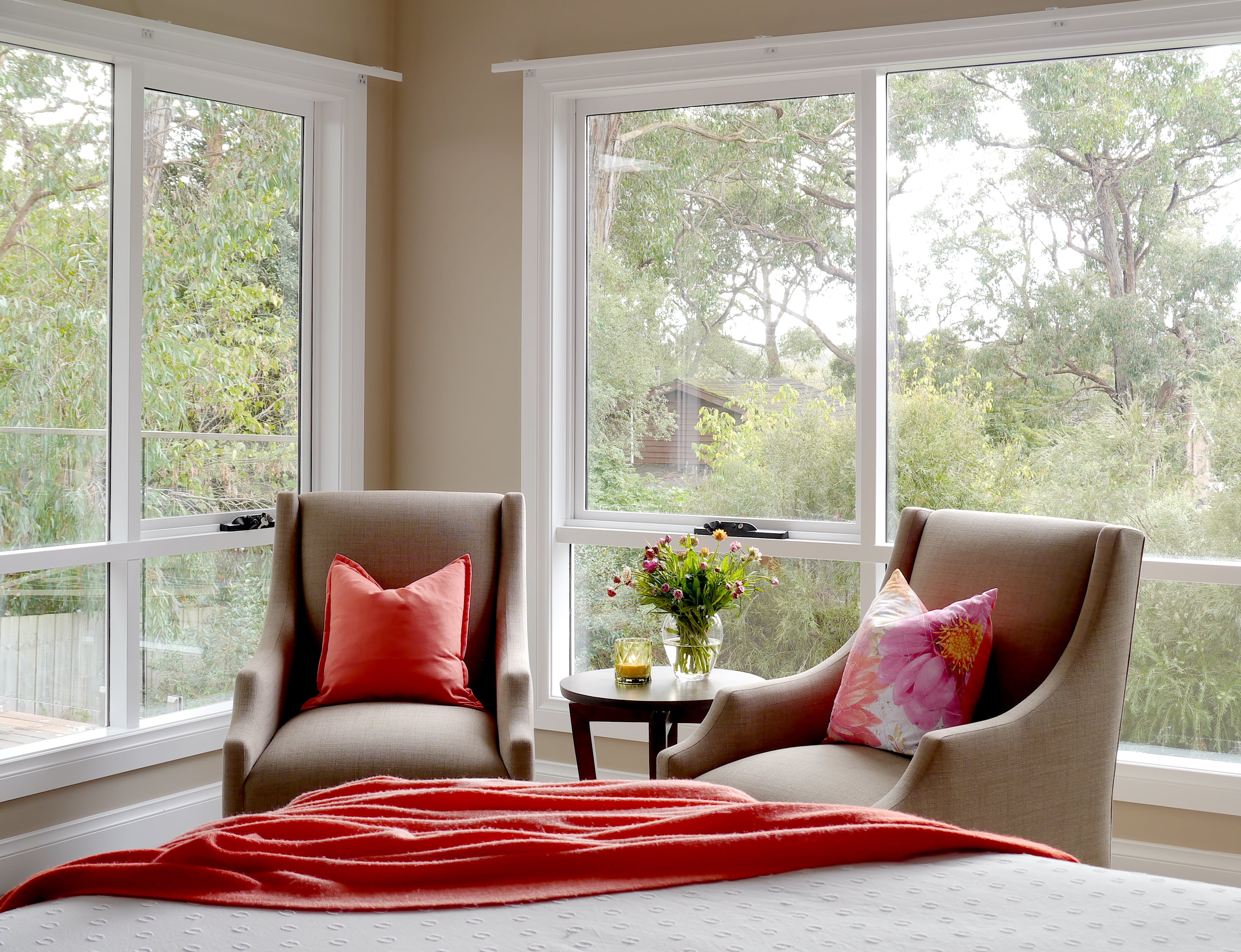 More custom chairs and furniture was selected for the parent’s retreat placing them in an ideal spot to take advantage of the most magnificent view of the Dandenong Ranges.