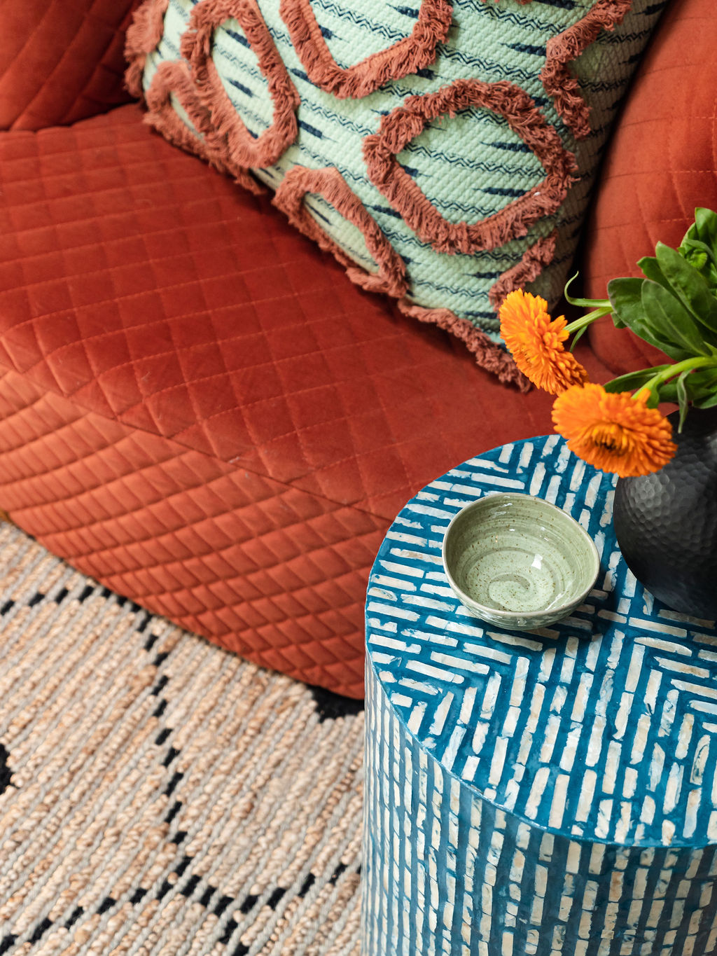 Beyond the interior, I also selected tiles for the alfresco kitchen and styled the space with accessories such as cushions and colourful hand-painted pots, tying the indoor and outdoor areas together beautifully. The result is a stylish, liveable home that feels both fresh and deeply personal to the family.