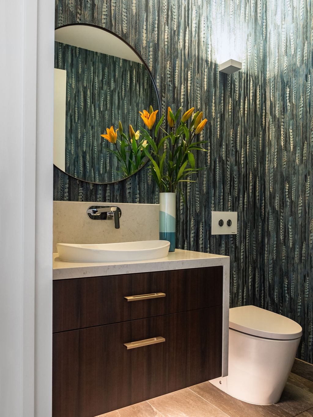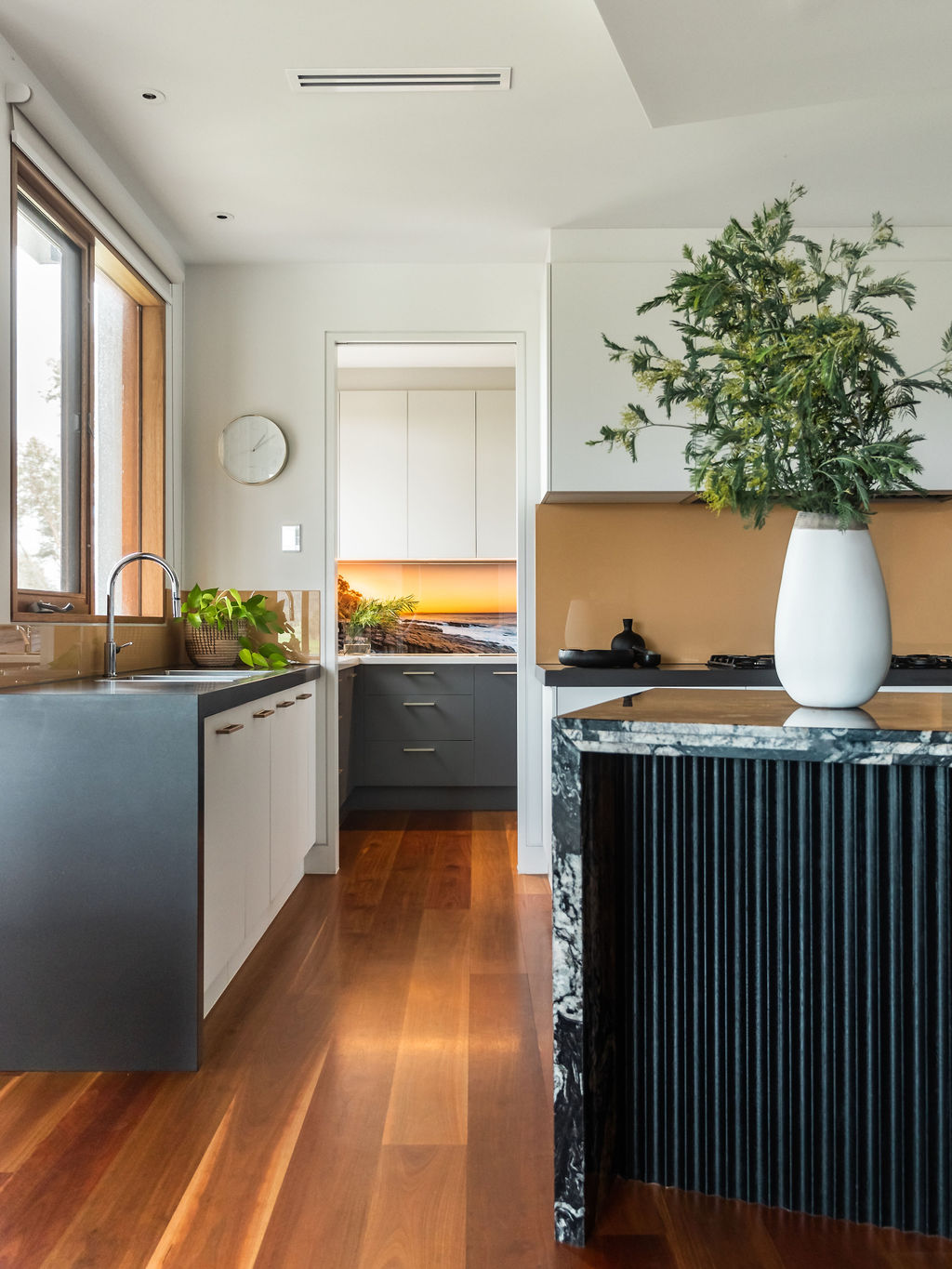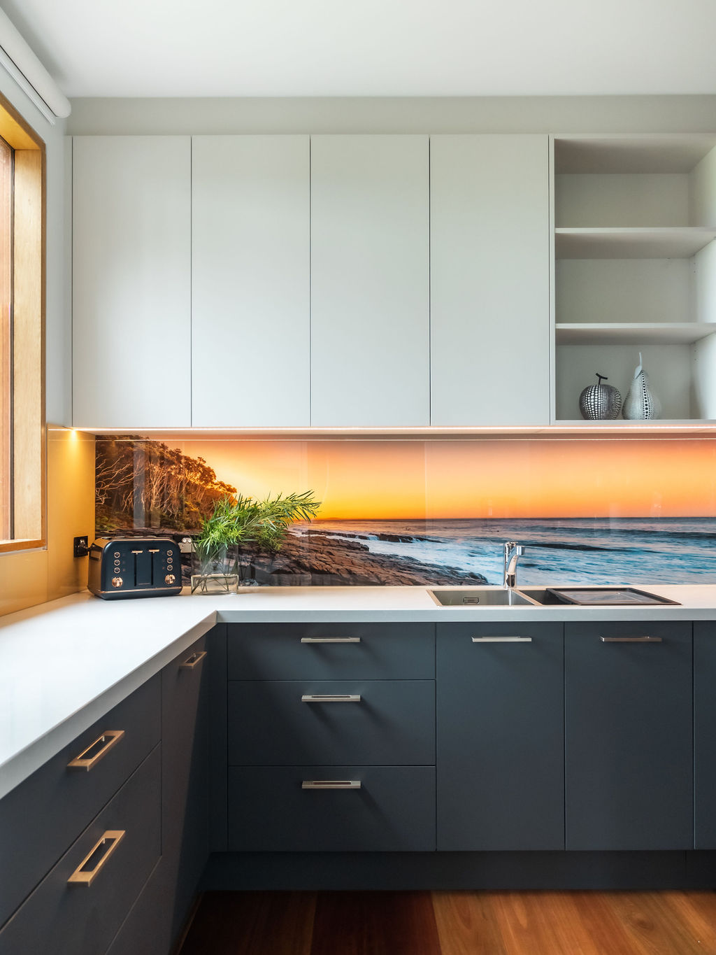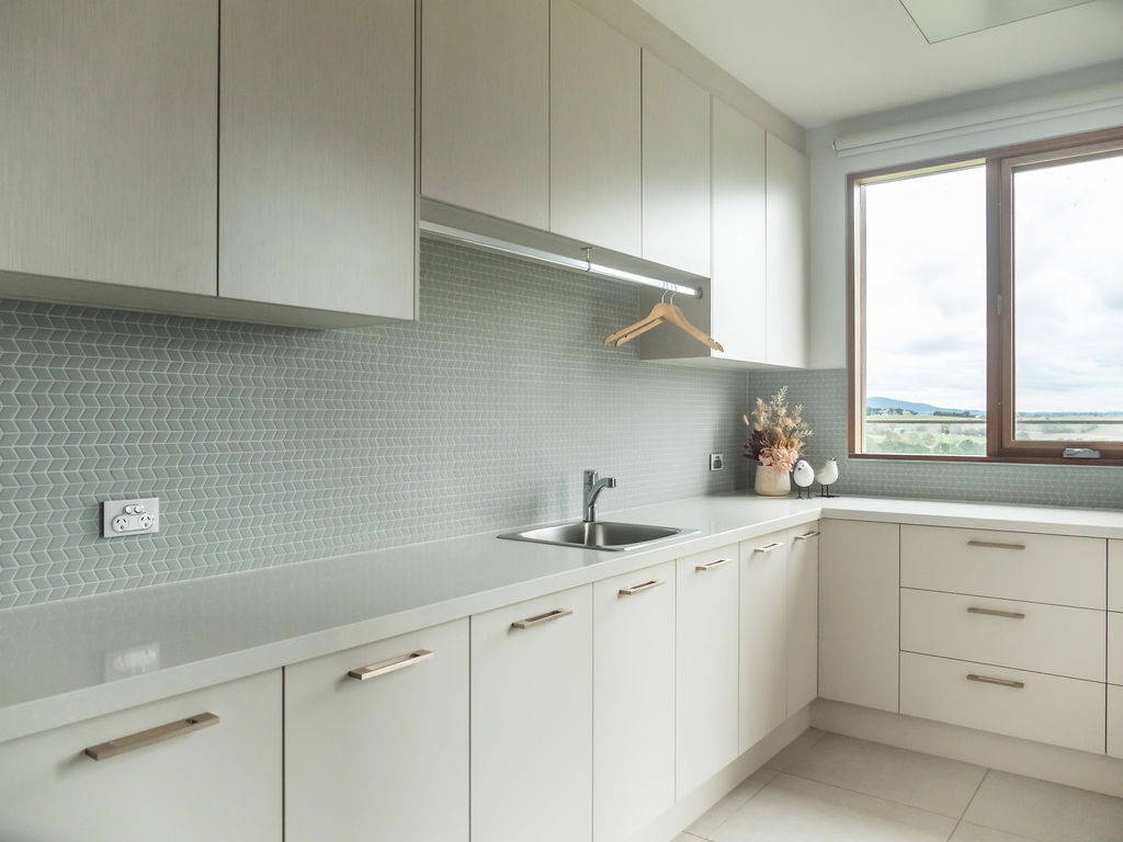 The biggest challenge for the builder, Mitch Stevens of Hi Style Building Group, was all the curved glass windows and walls in the home. This actually inspired a lot of the interior fit out, including the magnificent curved kitchen island bench!